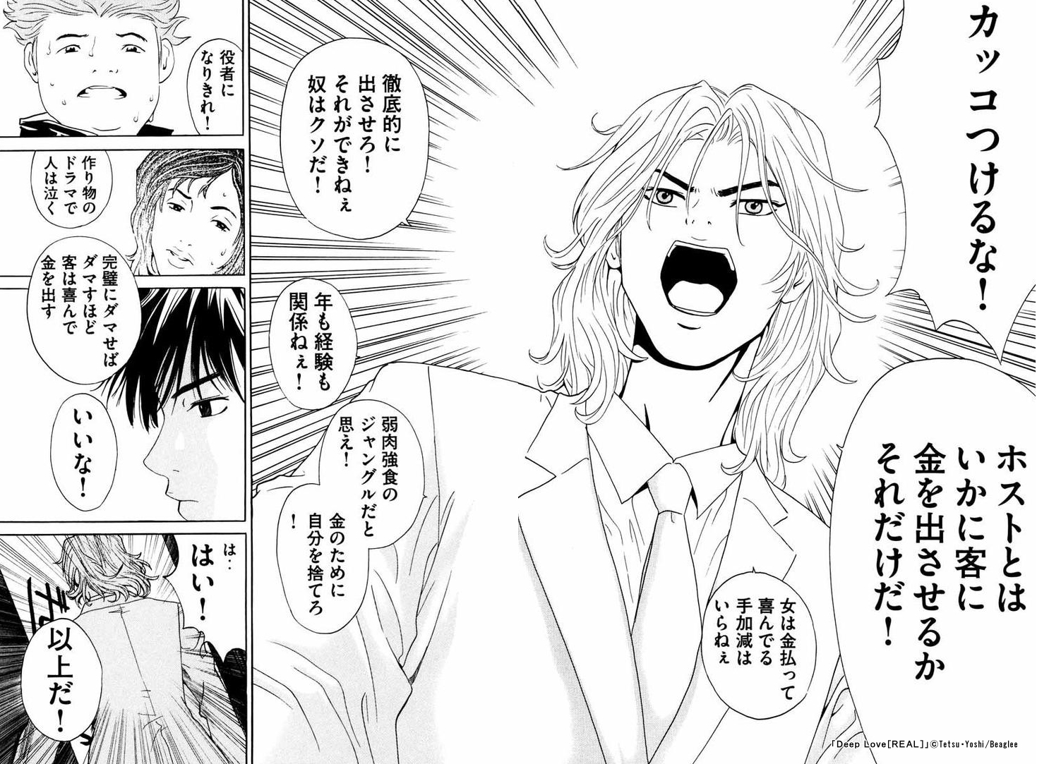 Apr 18, · Deep Love ホスト 2巻 この過酷な運命に導かれ、あなたはきっと"生きる"ことの意味を知る――! アユを失った義之(よしゆき)は、渋谷のホストクラブ『プラチナ』でホストとして頭角を現し、ついに社長として店を任されるまでになる。Deep Love REAL 〔完全版〕 1巻の詳細。暗い過去を持つ義之(よしゆき)が訪れたのは、渋谷のホストクラブ'プラチナSep 23, · Tetsu,Yoshiの『Deep LoveREAL』を読むなら全話無料(全190話)で読めるスキマ! 長編漫画,メディア化,夜のお仕事,青年漫画 ビーグリー 醒めきった眼を持つ男義之。18歳にして人生に絶望した彼が訪れたのは、渋谷のホストクラブ『プラチナ』だった。誰もが思った。「義之はホストに向いていない